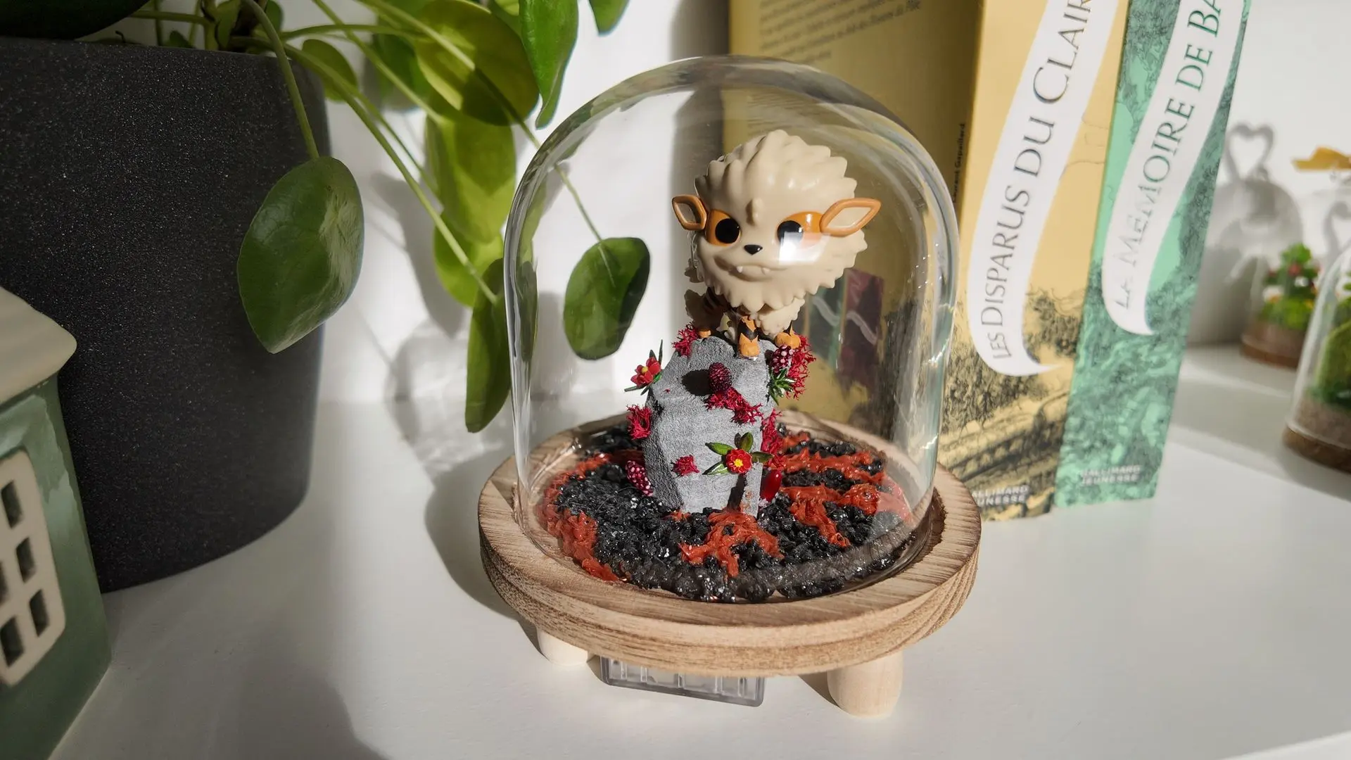 Ce modèle est vraiment une taille "passe partout". Cette cloche peut convenir, sur une table de chevet, un bureau, une étagère... Sa petite taille lui donne un côté encore plus mignon !